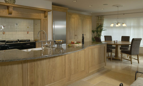 Smart traditional oak kitchen furniture with quarter sawn crossbanded inlays