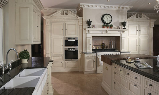 Georgian style handpainted kitchen furniture with antique silver door & drawer pulls