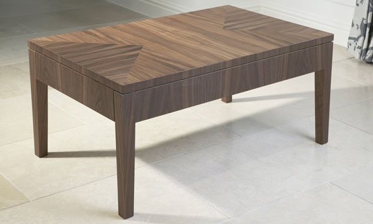 Coffee table with concealed drawer in black walnut