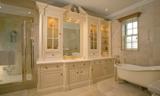 Grand Victorian style handpainted bathroom furniture with antique brass door & drawer pulls