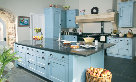 Traditional country style handpainted kitchen furniture with handturned african black door & drawer pulls